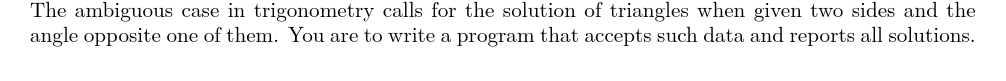 UVA376 More Triangles ... THE AMBIGUOUS CASE