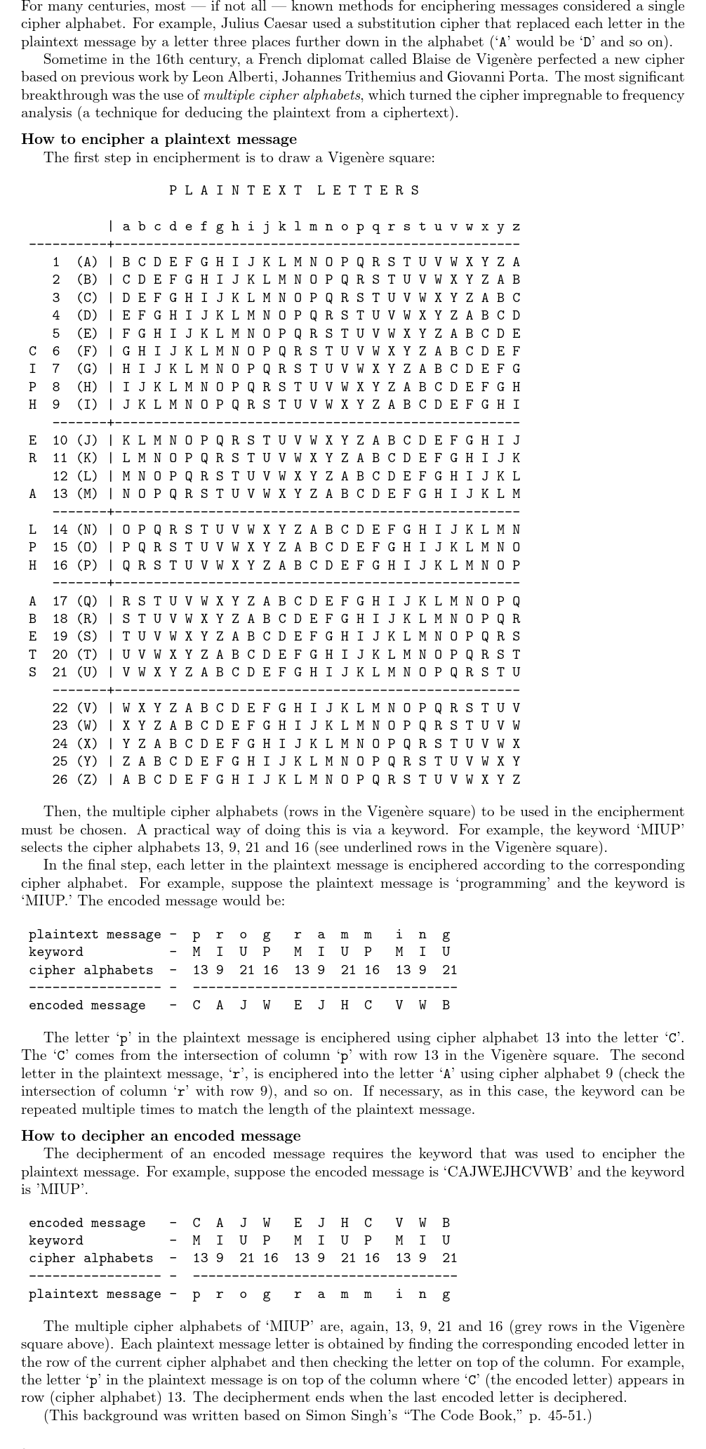 UVA856 The Vigenère Cipher