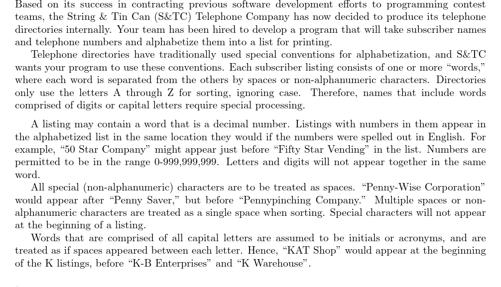 UVA885 Telephone Directory Alphabetization
