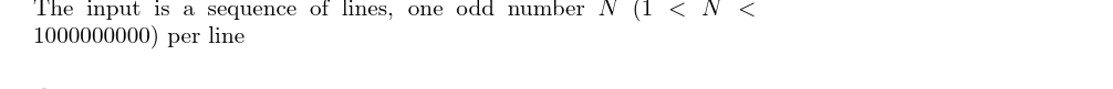 Joana 喜欢玩奇数。一天,她开始了书写。在每一行,她写下了一个又一个奇数。就像下面这样: $1$ $3,5,7$ $9,11,13,15,17$ $19,21,23,25,27,29,31$ $...$ 在某一行,Joana 写下了 $55$ 个奇数。你能找出这一行的最后 $3$ 个奇数之和吗?一般地,给你一个数代表某一行奇数的个数,你能找出这一行的最后 $3$ 个奇数之和吗? 输入的每一行会给出一个数 $N$ 代表某一行的奇数的个数,你的任务就是找出这一行的最后 $3$ 个奇数之和。