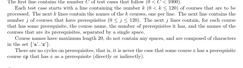 UVA925 No more prerequisites, please!