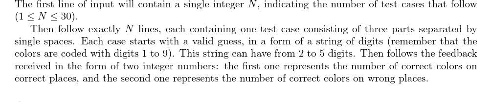 UVA947 Master Mind Helper