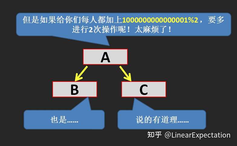 > C(右儿子):但是这样太慢了,我们的子孙也都要加 $2$ 啊。