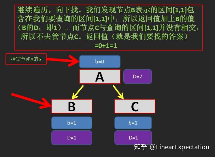 您可能有疑问,这样一找到就返回感觉像是碰运气啊,不会**有遗漏或者有重复**吗?事实上,我们不能按照正常的逻辑顺序来看一个递归的程序,要知道,第一个判断是基于下面两个递归调用的,我们调用的时候就确定了两个子树分别代表左边一半和右边一半,那么它就不会有重复出现,且我们不断调用,一定能够穷尽整个线段树,可以感性理解一下。