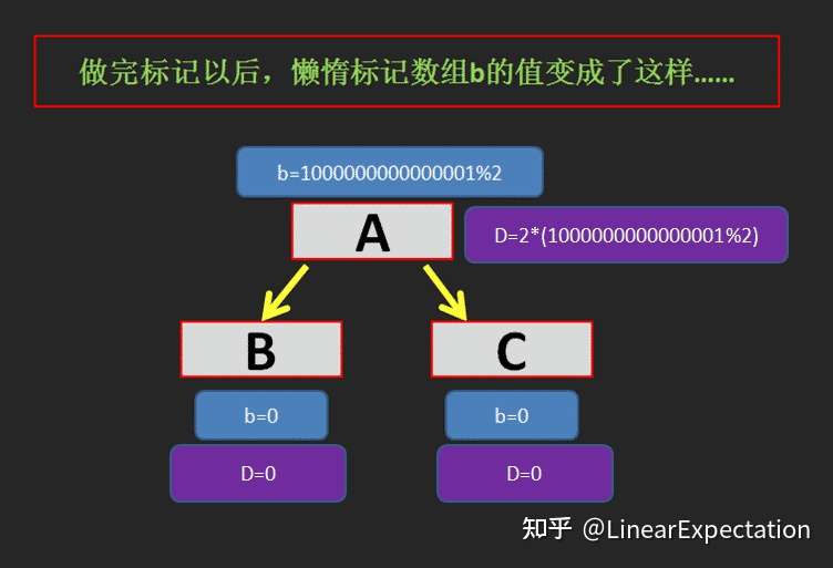 - 标记永久化,如果确定懒惰标记不会在中途被加到溢出(即超过了该类型数据所能表示的最大范围),那么就可以将标记永久化。标记永久化可以避免下传懒惰标记,只需在进行询问时把标记的影响加到答案当中,从而降低程序常数。具体如何处理与题目特性相关,需结合题目来写。这也是树套树和可持久化数据结构中会用到的一种技巧。