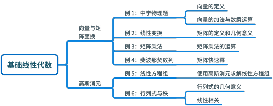 线性代数是关于向量和线性映射的一个数学分支,主要处理线性关系问题。虽然读者可能没有系统的地学习过线性代数,但肯定已经和线性代数打过交道了:在数学课中,我们学习过如何求解二元一次方程,以及如何对一个函数进行伸缩变换;在物理课中,我们学习过力的平行四边形法则,也知道力作用在物体上,并使物体在力的方向上通过了一段距离的过程就是做功。这些问题都可以抽象成线性代数,相信读者有能力理解基础的线性代数。