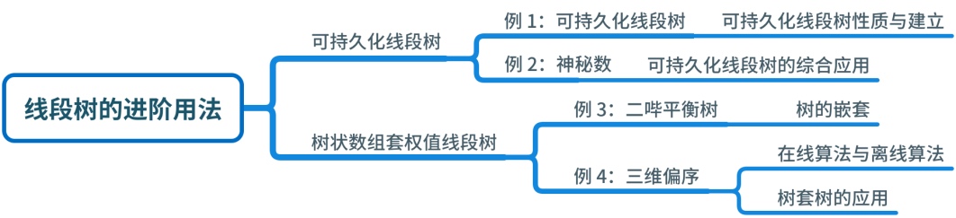 本章主要学习可持久化线段树与树状数组套权值线段树的一些应用。我们知道,对于一棵线段树而言,如果它的总长度不变,那么它的形态是不会改变的。也就是说,在值域不变情况下,权值树的形态是不会改变的。这样一来,就可以对权值树进行合并的操作。对于权值树$A$,$B$,若 $A$,$B$ 形态相同,则可以合并这两棵权值树,合并的方式就是对应结点相加。